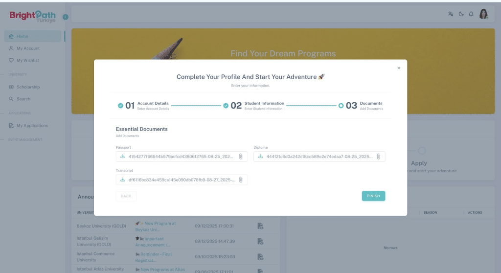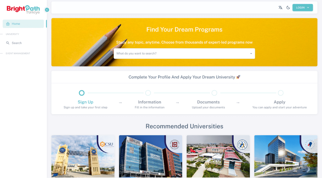 Are you thinking about studying in Turkey but don’t know where to start? Whether you’re from the Middle East, Africa, Asia, or Europe Turkey offers high-quality education with affordable fees, English taught programs, and a vibrant international student life. This blog will guide you through the entire application process, from choosing the right university to submitting your application through the BrightPath platform.