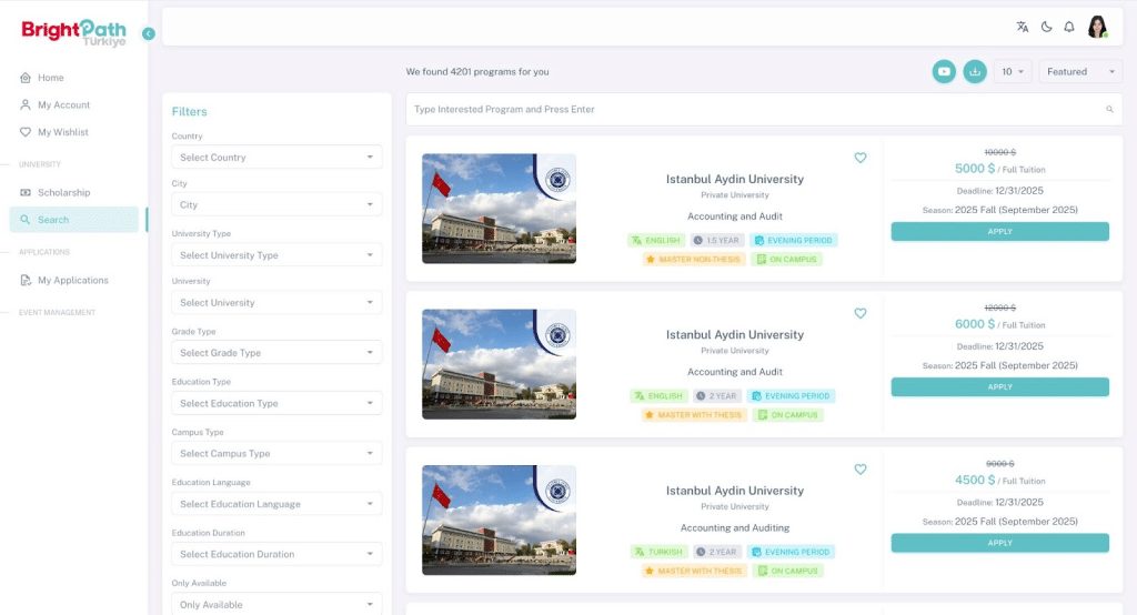 ✅ Once you’ve found the one, click “Apply” — and boom, you’ve just taken your first big step toward studying in Turkey!